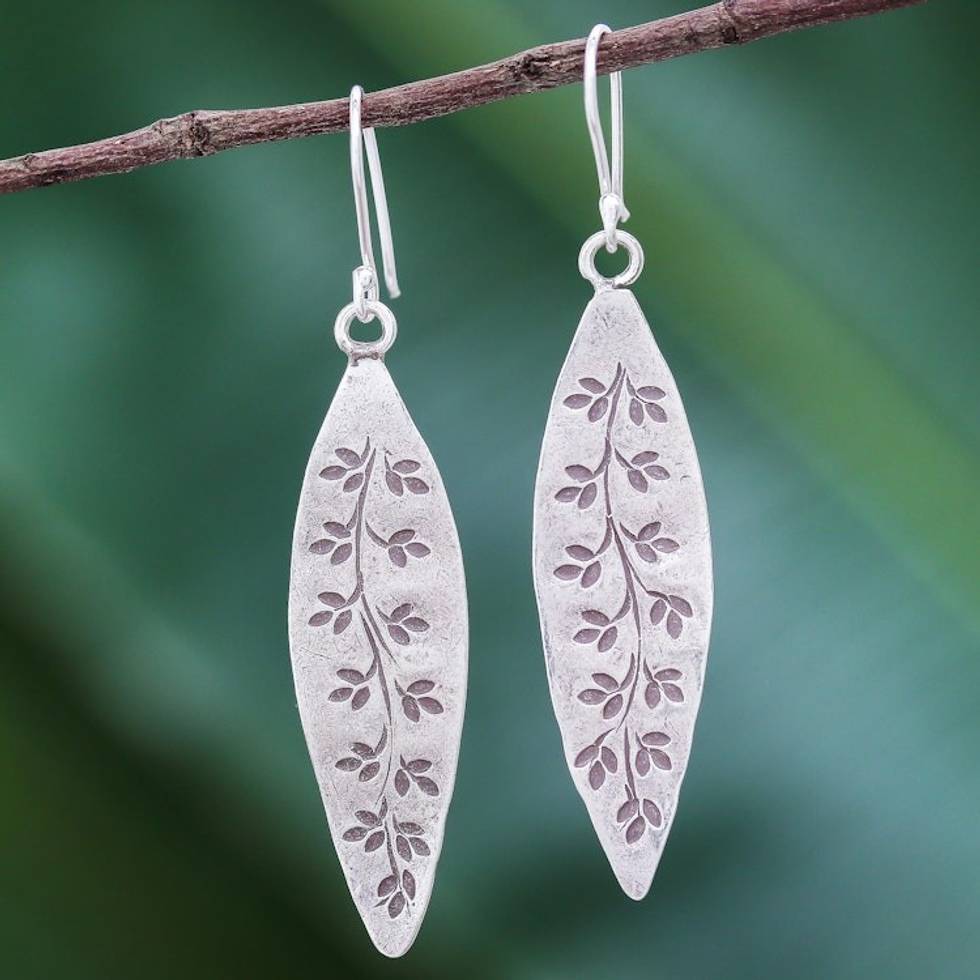 Handcrafted Karen Silver Dangle Earrings from Thailand 'Karen Spring' Item ID: 2669928622