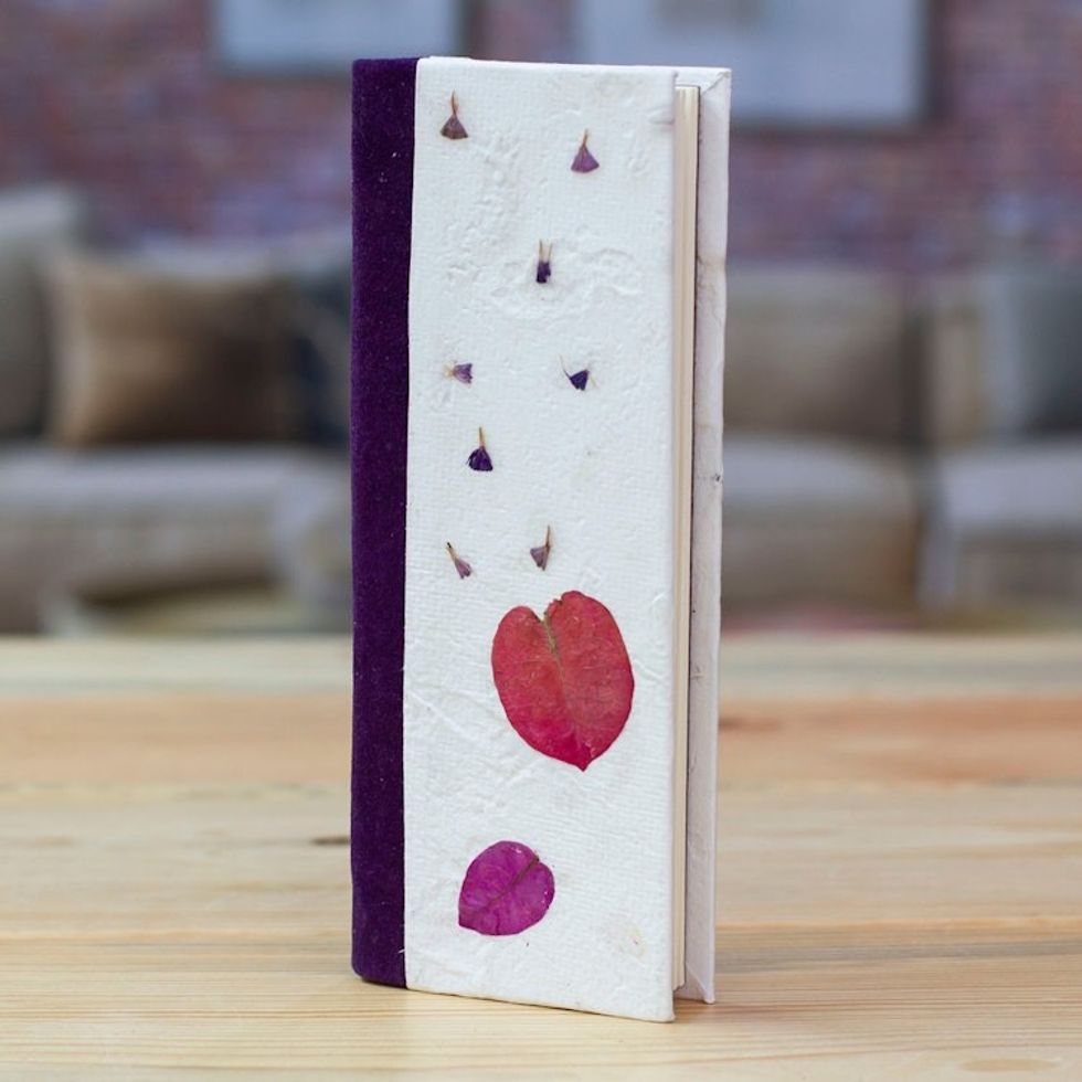 Handcrafted Leafy and Floral Purple Amate Paper Notebook 'Spring Thoughts' Item ID: 2671807841