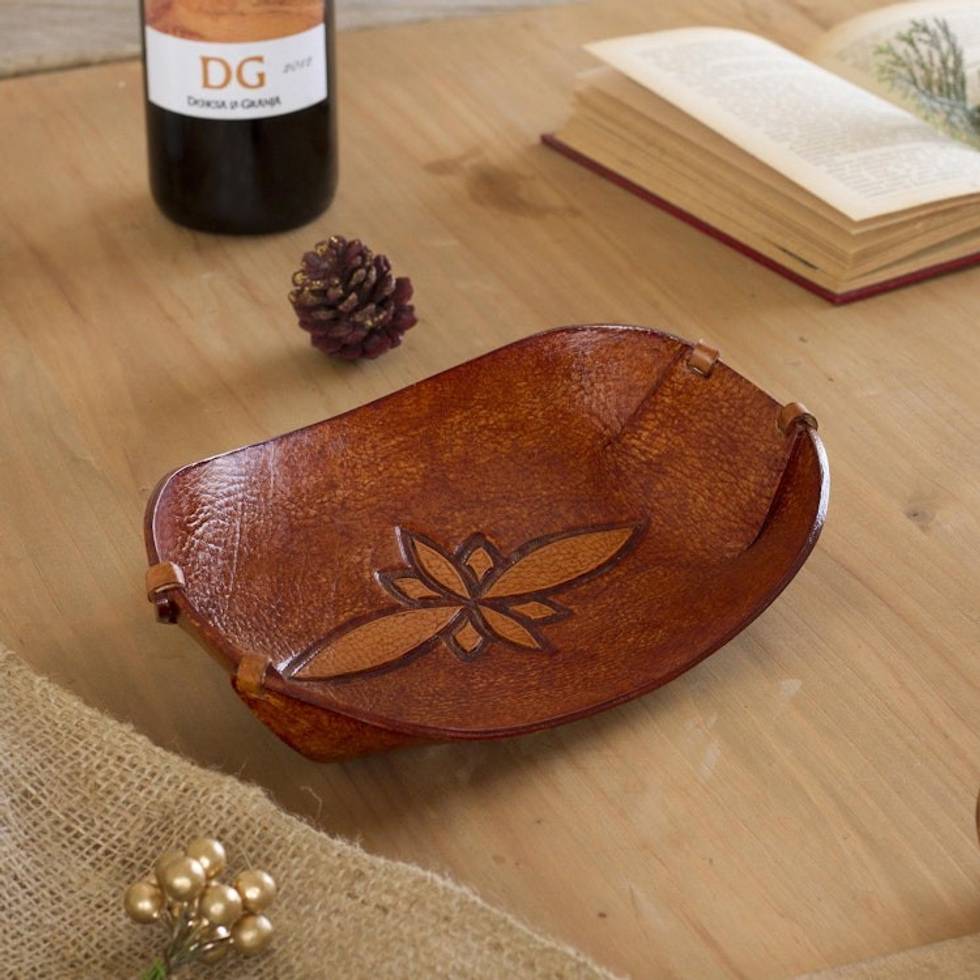 Handcrafted Leather Catchall from Peru 'Gothic Flower' Item ID: 2671819632