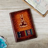 Handcrafted Llama Leather Passport Cover in Dark Brown 'Thoughtful Llama' Item ID: 2671695567