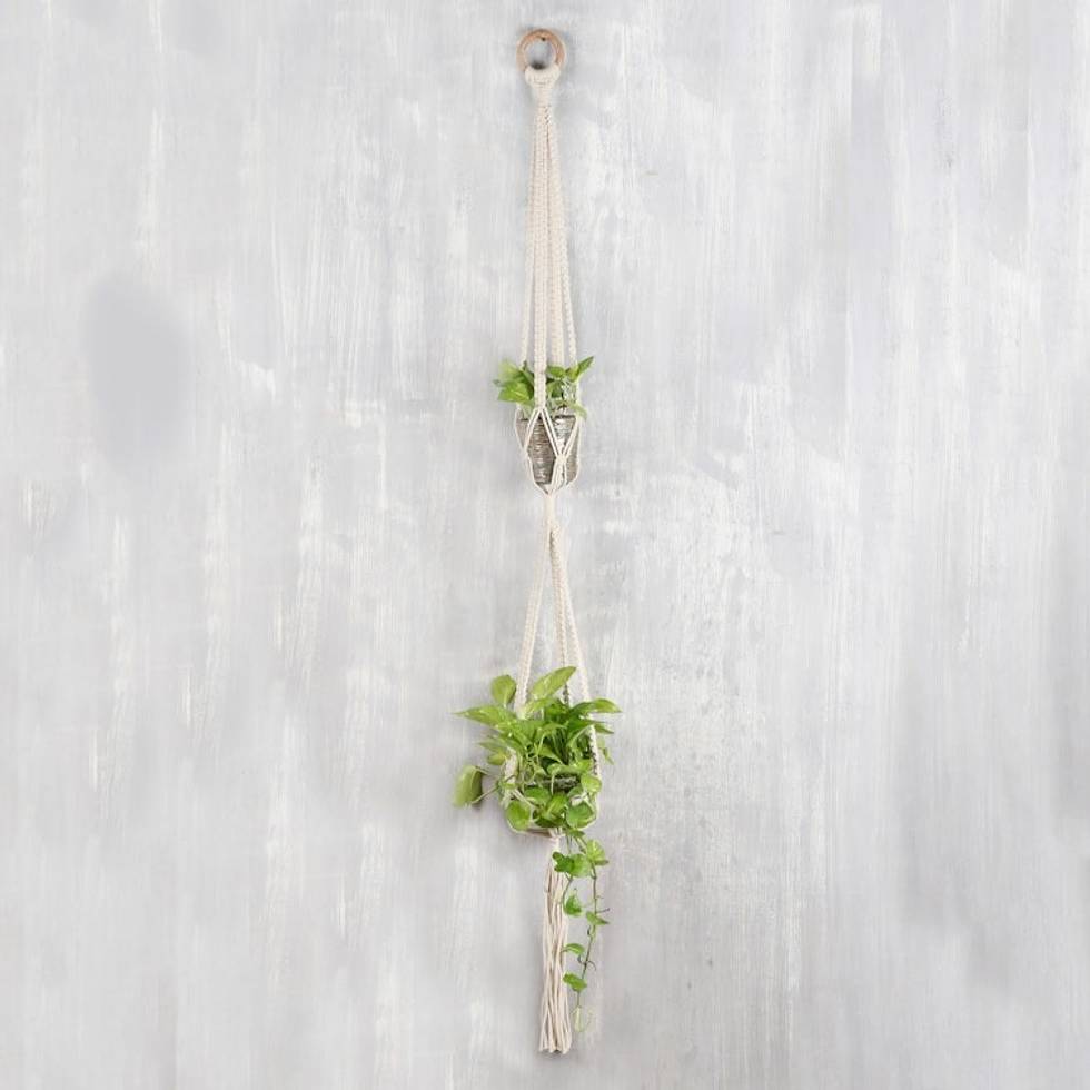 Handcrafted Macrame Cotton Hanging Planter with Wood Ring 'Natural Element' Item ID: 2669956033