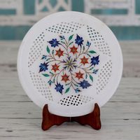 Handcrafted Marble Inlay Decorative Plate from India 'Floral Waltz' Item ID: 2671792017