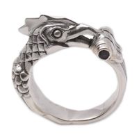 This is the most adorable ring! Nyoman Rena has captured the playfulness of the monkey in the design -- the monkey is bright-eyed, and has a happy smile. Love the positioning of the monkey's hands, too. One is underneath the monkey's chin, and the other is curved upward next to his face, in front of his ear -- so, typical of monkeys, he is assuming a silly pose, and clowning a bit. The ring has depth and dimension too. The monkey's fur texturing was carved into the original wax sculpt, so you can actually feel it on the silver end product as well. Although not a large ring (in scale) it has a nice, solid weight to it. It makes me smile whenever I look down at my hand.