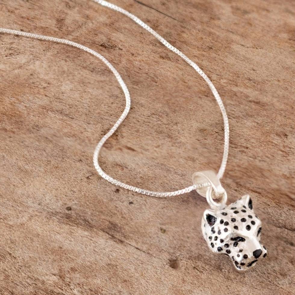 Handcrafted Men's Sterling Silver Jaguar Pendant Necklace 'Colombian Jaguar' Item ID: 2671400374