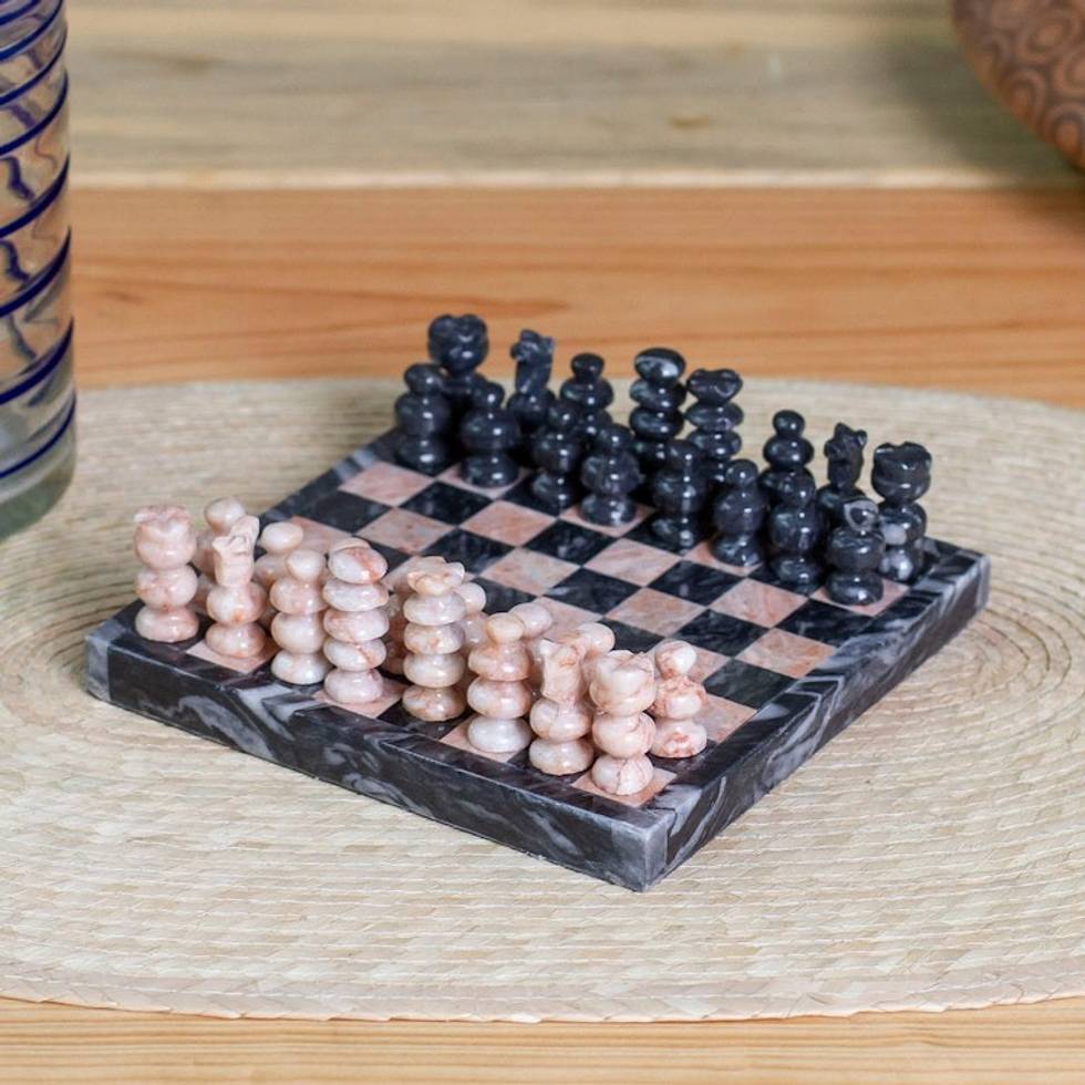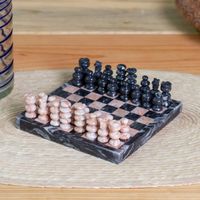 Handcrafted Mini Marble Chess Set in Pink and Grey 'Grey and Pink Challenge' Item ID: 2671808970