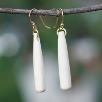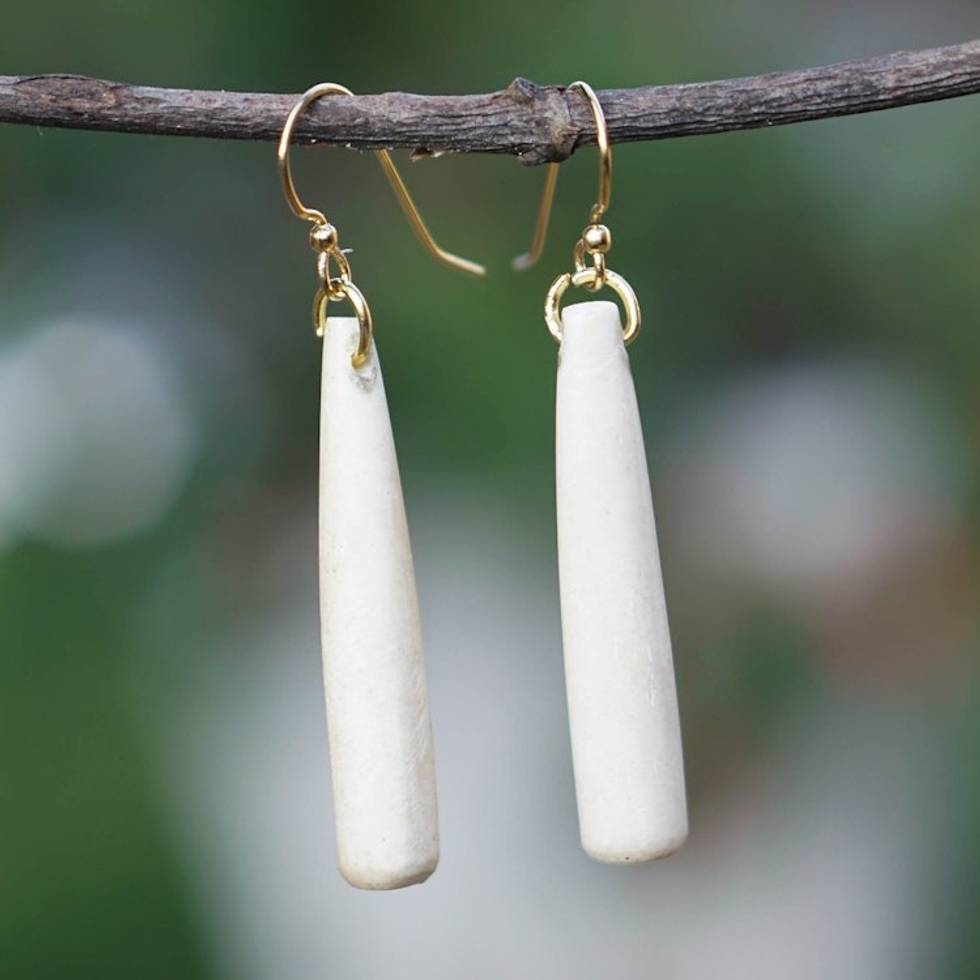Handcrafted Minimalist Ivory Dangle Earrings from Ghana 'Minimalist Ancestry' Item ID: 2671804614