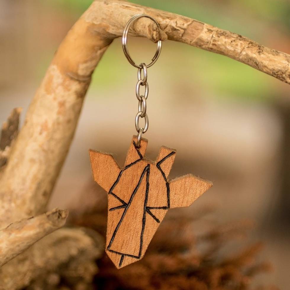 Handcrafted Minimalist Modern Cedarwood Giraffe Keychain 'Minimalist Giraffe' Item ID: 2671769618