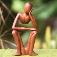 Handcrafted Modern Abstract Balinese Wood Sculpture 'Thinking of You' Item ID: 2671820906