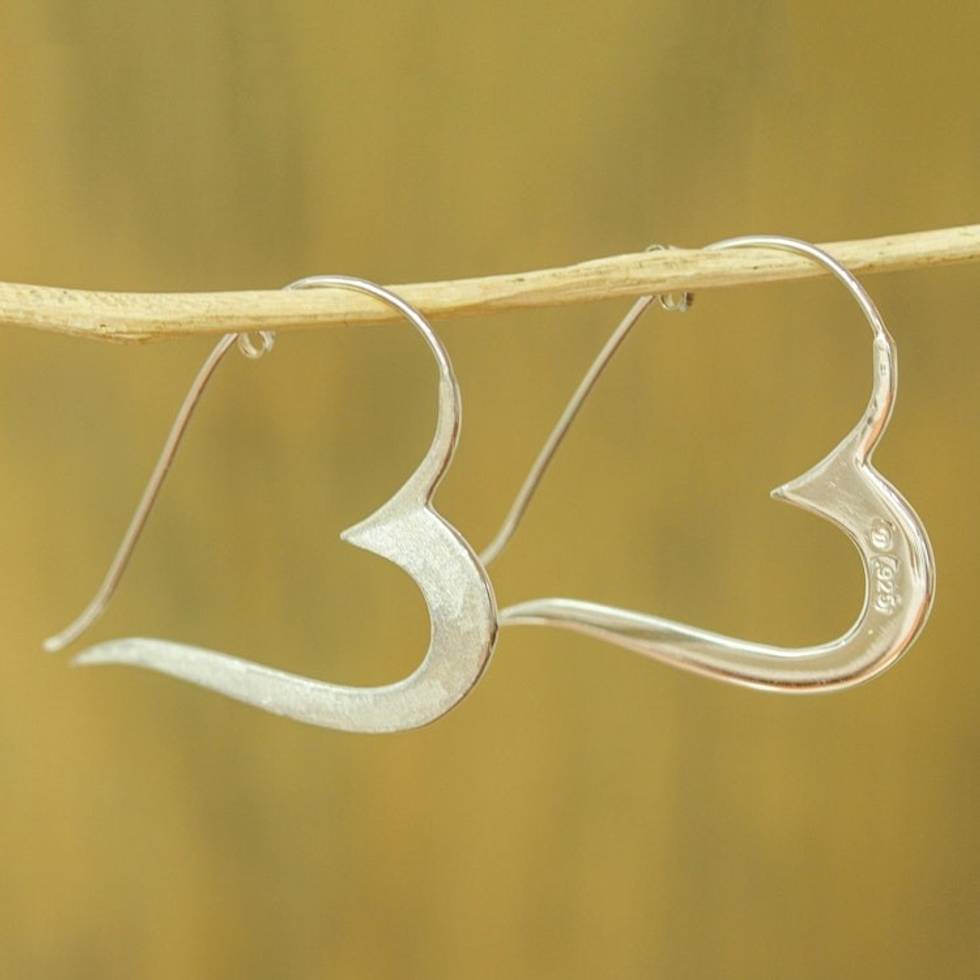 Handcrafted Modern Heart Theme Sterling Silver Post Earrings 'Mexican Heart' Item ID: 2671808654