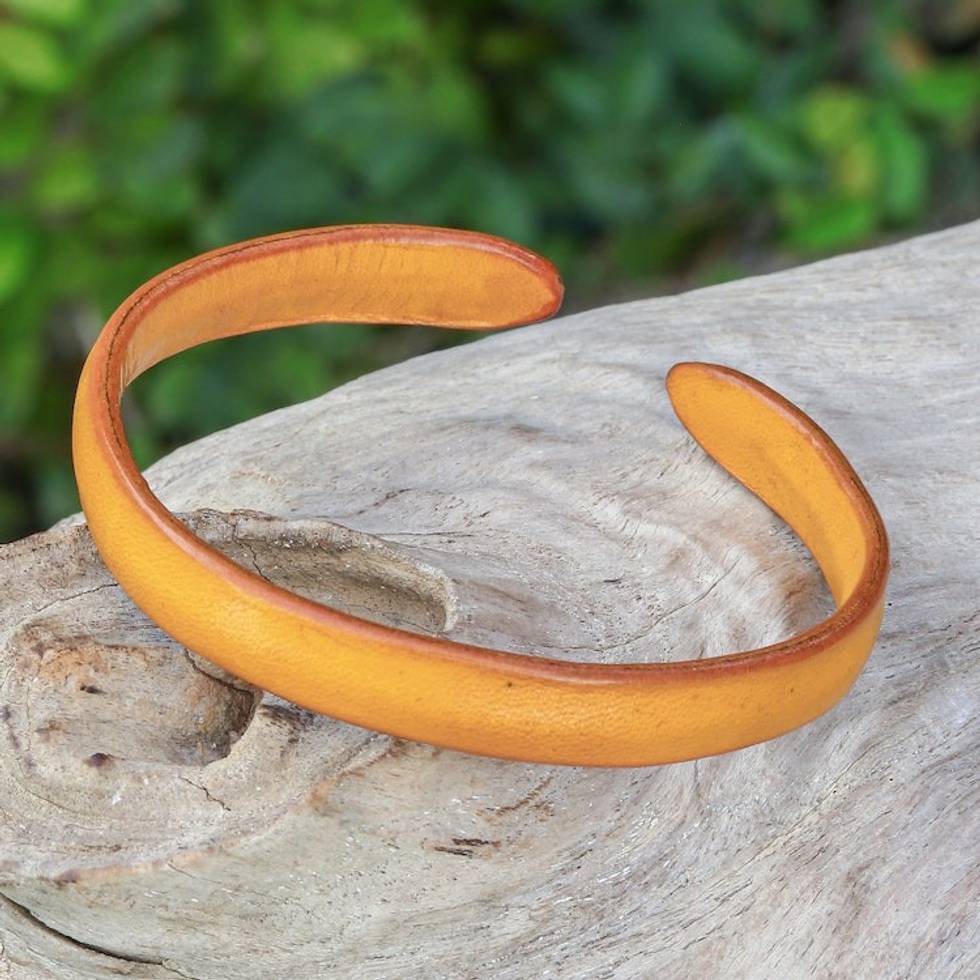 Handcrafted Modern Leather Cuff Bracelet in Yellow 'Simply Joyous' Item ID: 2671797720