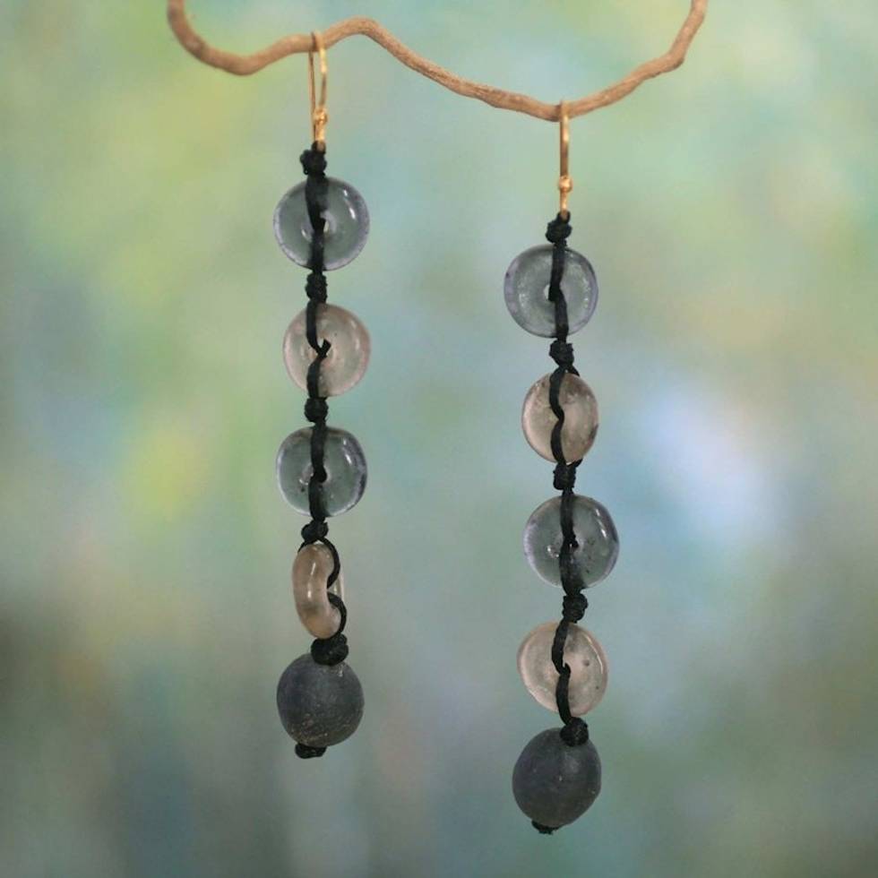 Handcrafted Modern Recycled Glass Dangle Earrings 'Pretty Taupe' Item ID: 2671806950