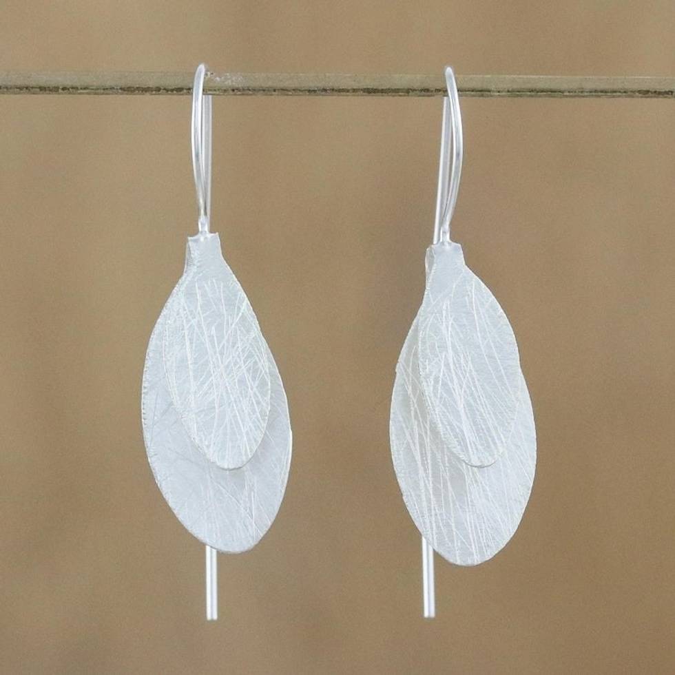 Handcrafted Modern Thai Sterling Silver Leaf Earrings 'Fluttering Foliage' Item ID: 2671800921
