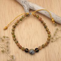 "Bali's mysterious enchantment finds its home in this beaded bracelet by Made Masna. Composed of unakite stones surrounding onyx and obsidian jewels, the bracelet joins each element with golden polyester cords. Brass beads decorate the sliding knot, allowing a radiant and comfortable look."