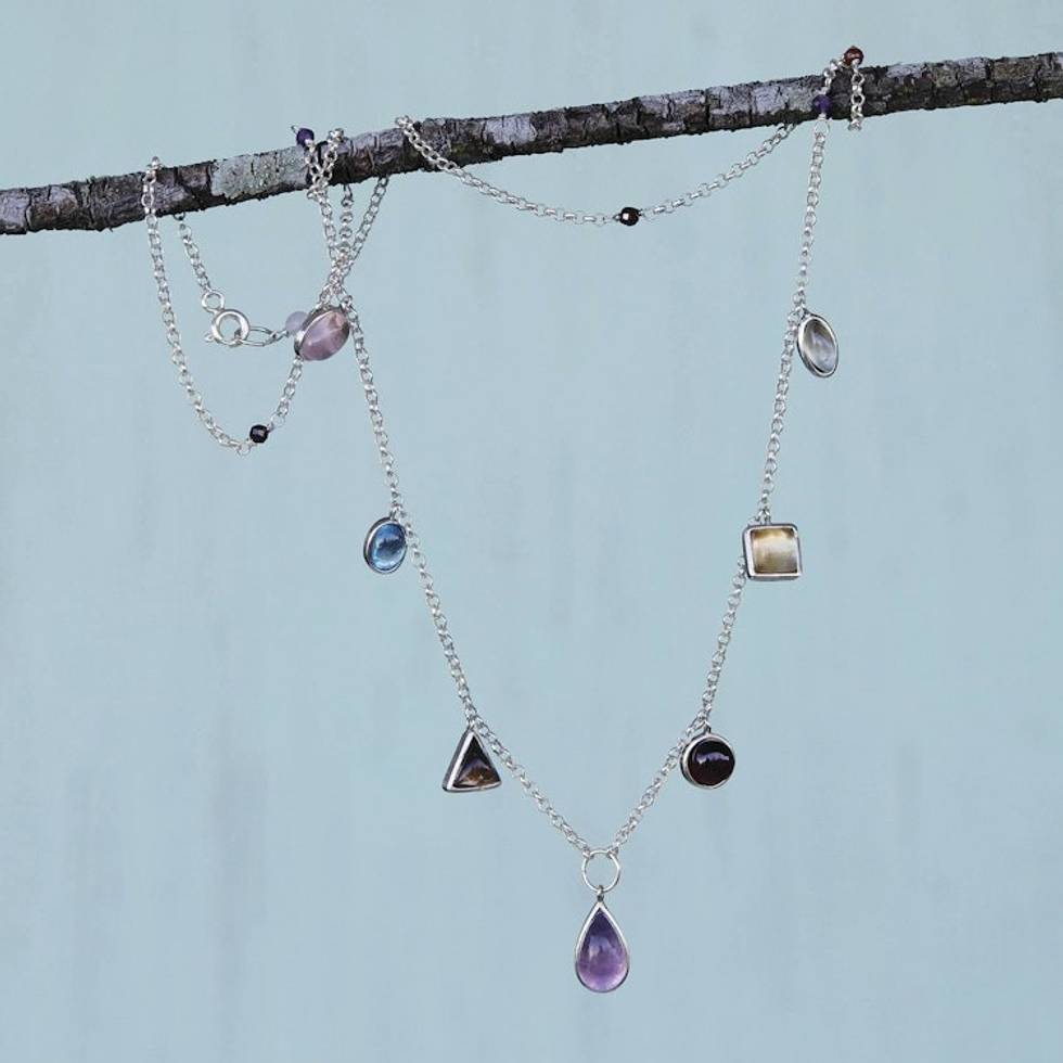 Handcrafted Multi-Gemstone Charm Necklace from Brazil 'Earth's Joy' Item ID: 2669935496