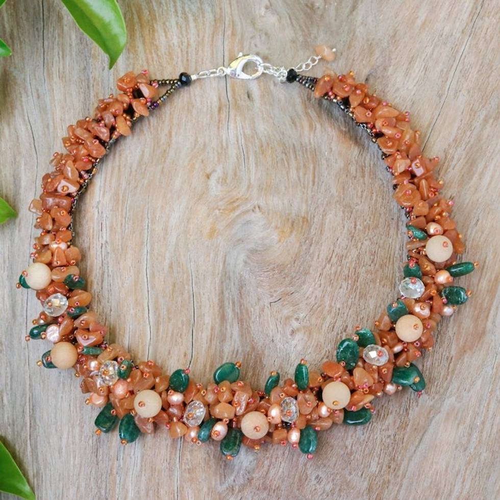 Handcrafted Multi-Gemstone Orange Beaded Necklace 'Orange Paradise' Item ID: 2671797258