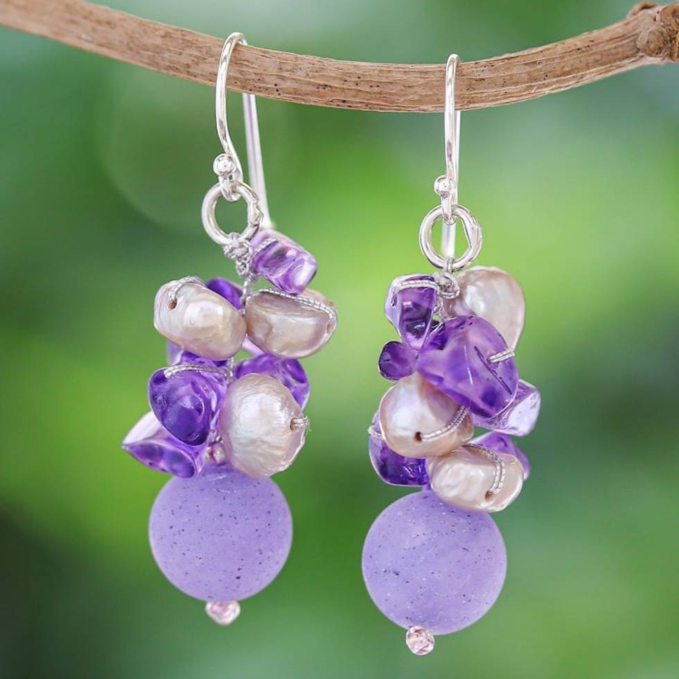 Handcrafted Multi-Gemstone Purple Dangle Earrings 'Purple Paradise' Item ID: 2669926709