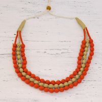 Handcrafted Multi-strand Fabric Wrapped Beaded Necklace 'Harmony in Orange' Item ID: 2671791146