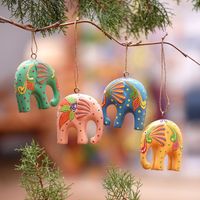 Handcrafted Multicolor Elephant Wood Ornaments Set of 4 'Sweet Trunks' Item ID: 2669891632