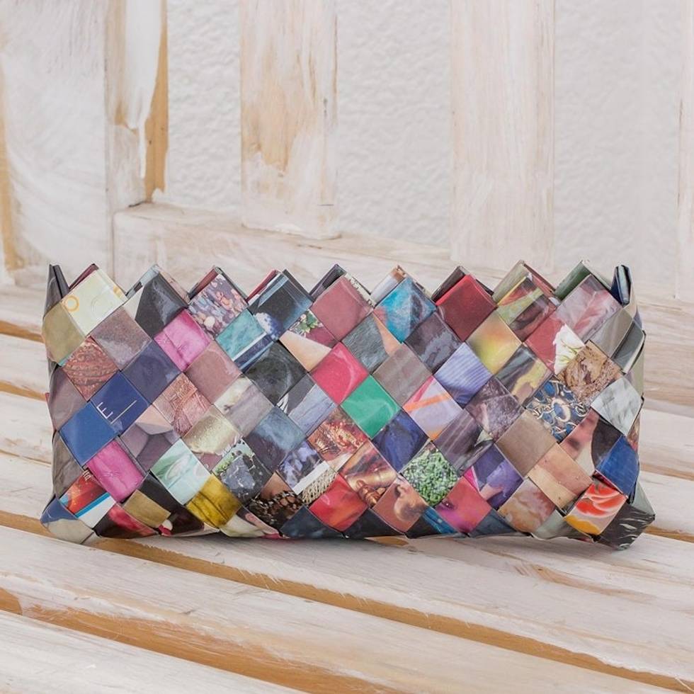 Handcrafted Multicolor Recycled Magazine Paper 4 Inch Clutch 'Fashion Fiesta' Item ID: 2671778711