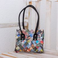Handcrafted Multicolor Recycled Magazine Paper Shoulder Bag 'Modern Collage' Item ID: 2671779231