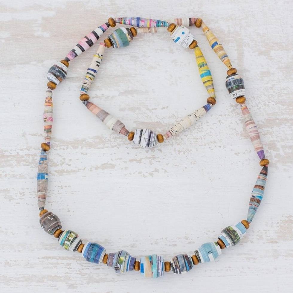 Handcrafted Multicolor Recycled Paper Bead Long Necklace 'New Spin' Item ID: 2671777421