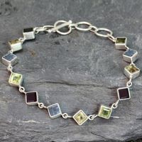 Handcrafted Multigemstone and Sterling Silver Link Bracelet 'Delicate Gaze' Item ID: 2669924070