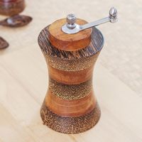 Handcrafted Natural Brown Palm and Teak Wood Pepper Mill 'Curved Pepper' Item ID: 2671797949