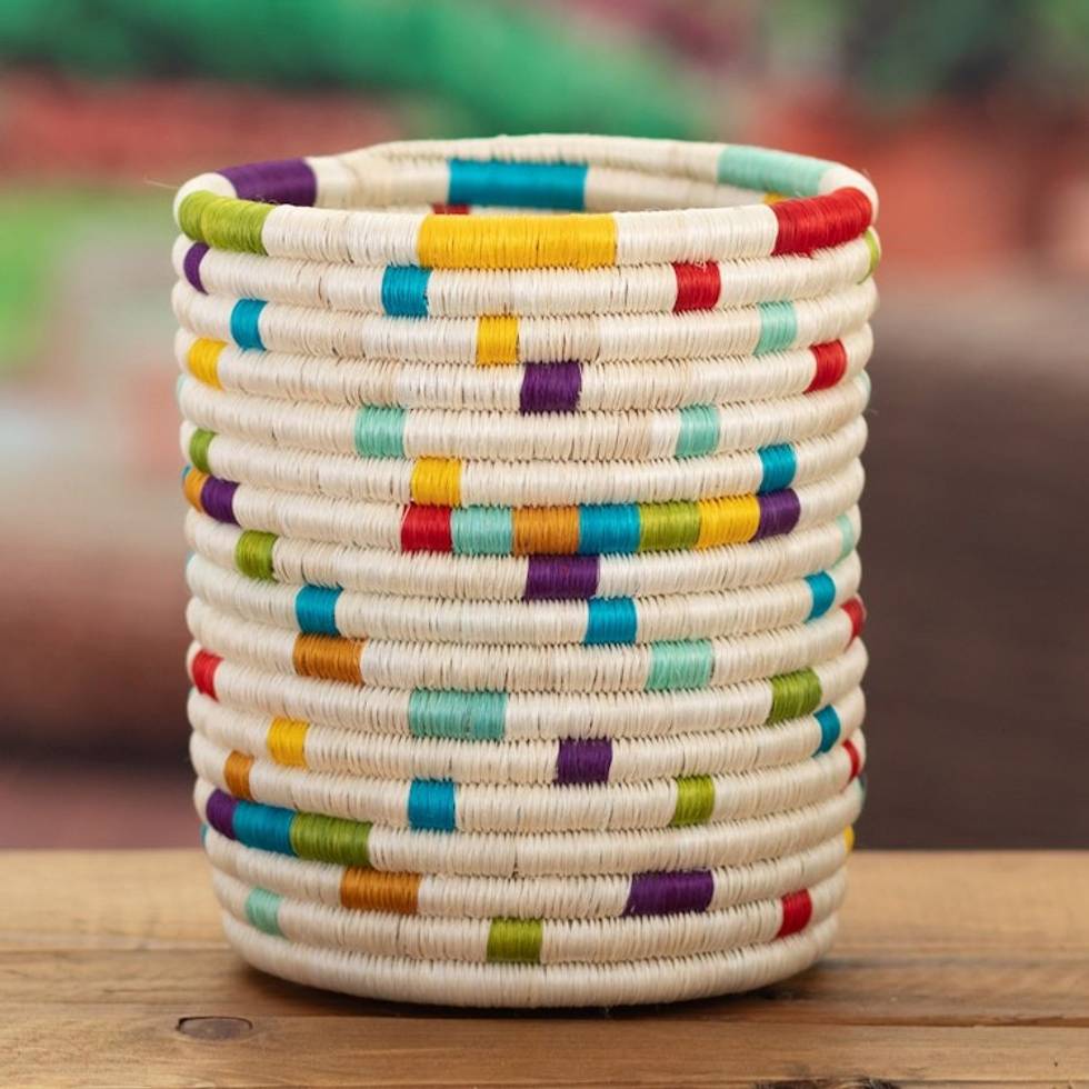 Handcrafted Natural Fiber Decorative Holder in Vibrant Hues 'Rainbow Kitchen' Item ID: 2671403468
