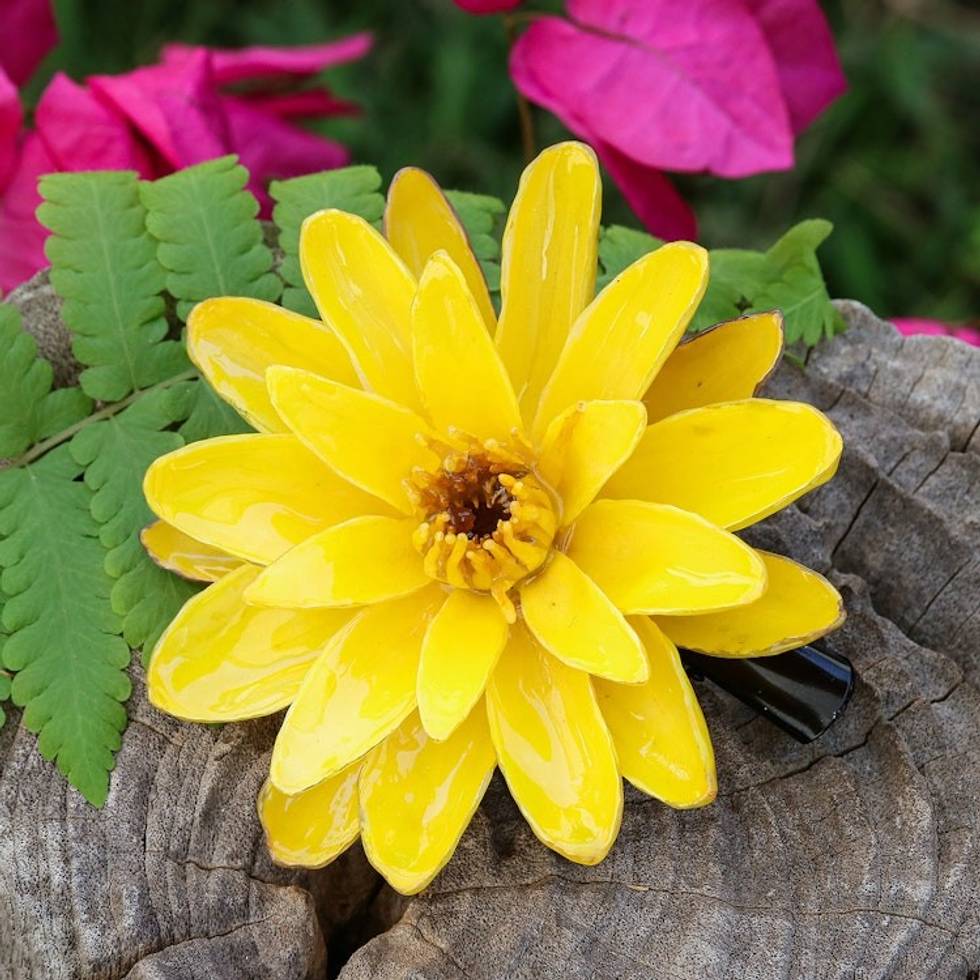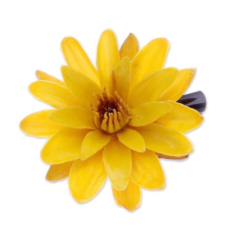 Handcrafted Natural Yellow Lotus Stainless Steel Hair Clip 'Harmonious Yellow' Item ID: 2671797036