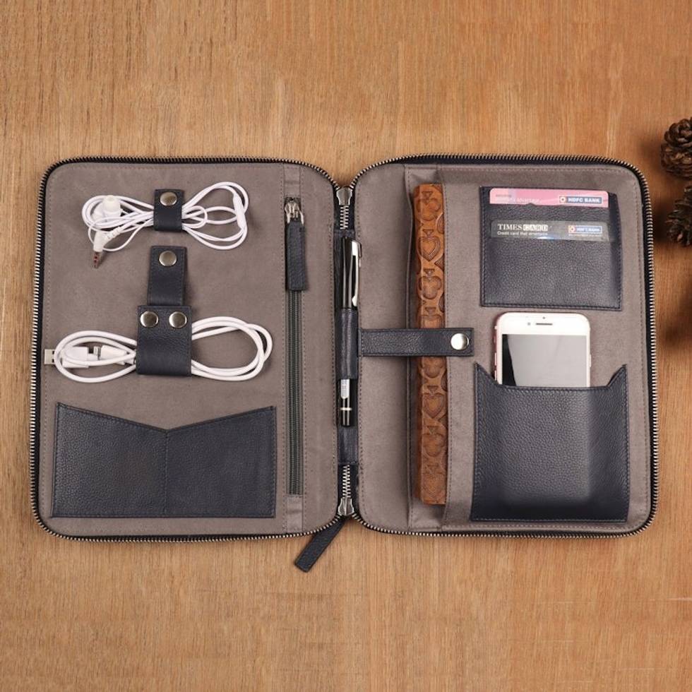 Handcrafted Navy Blue Leather Traveling Office Case 'Ultimate Organization' Item ID: 2669943886