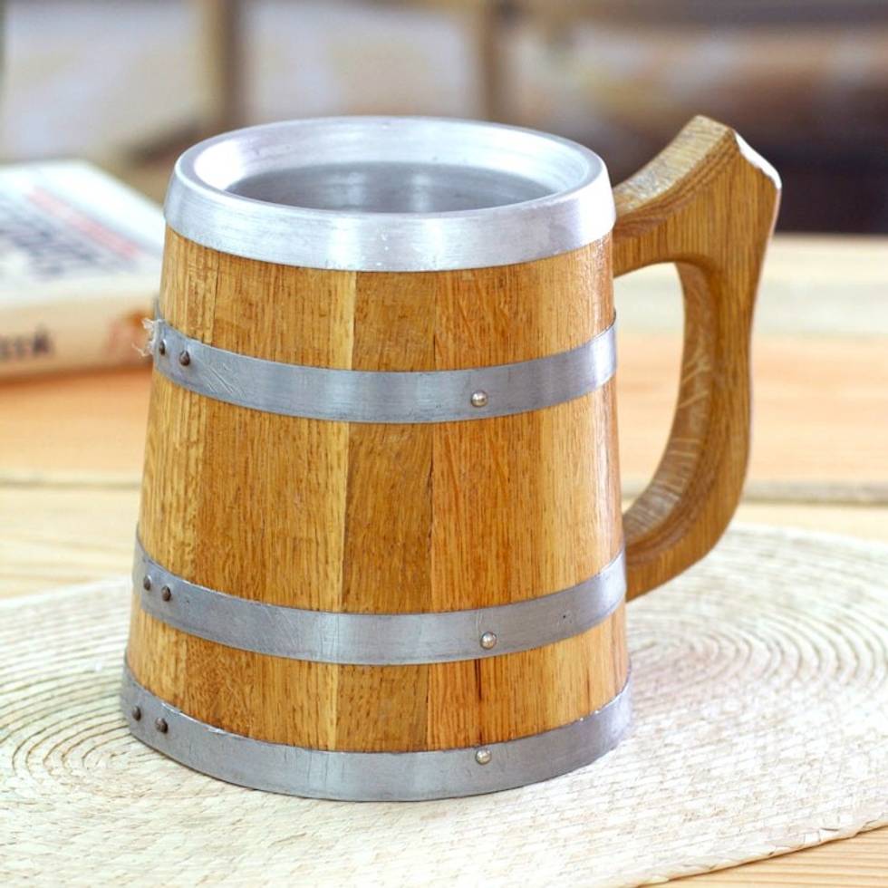 Handcrafted Oak Stave and Stainless Steel Beer Mug 'Memories from the Inn' Item ID: 2671807331
