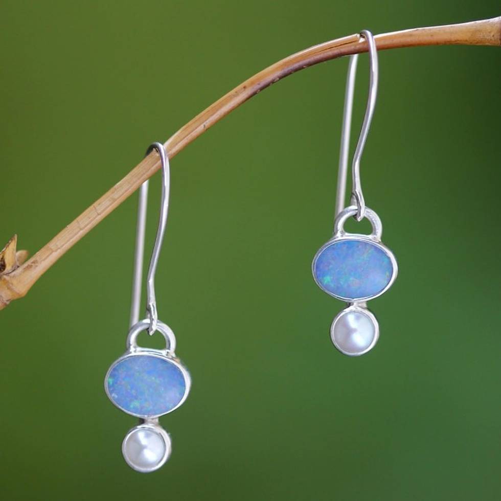 Handcrafted Opal and Pearl Dangle Earrings 'Karma' Item ID: 2669921466