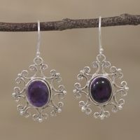 Handcrafted Oval Amethyst Dangle Earrings from India 'Oval Majesty' Item ID: 2671790823