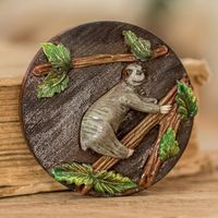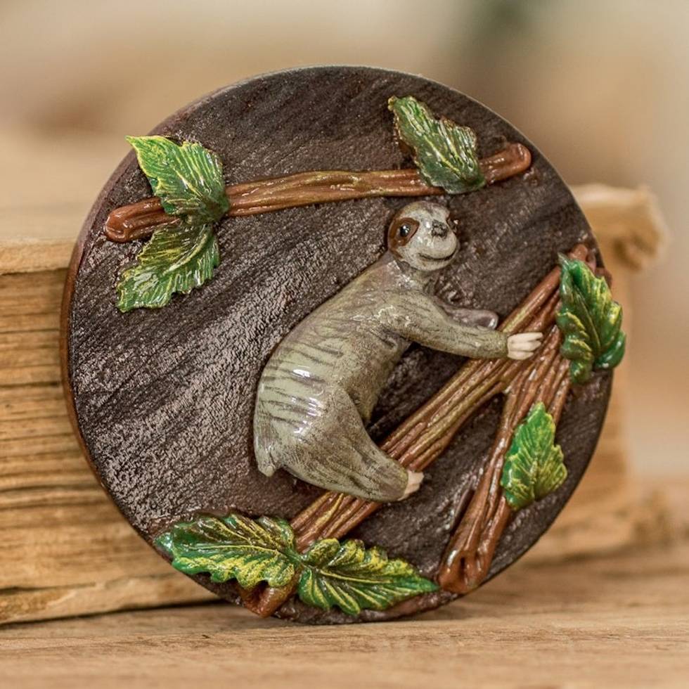 Handcrafted Painted Pinewood and Cold Porcelain Sloth Magnet 'The Tropical Sloth' Item ID: 2671771308