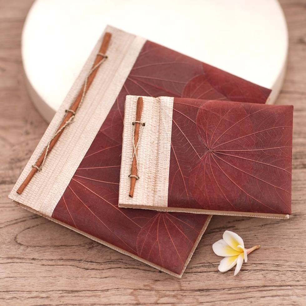 Handcrafted Pair of Rice Paper Notebooks from Indonesia 'Autumn Spirit in Red' Item ID: 2671820981