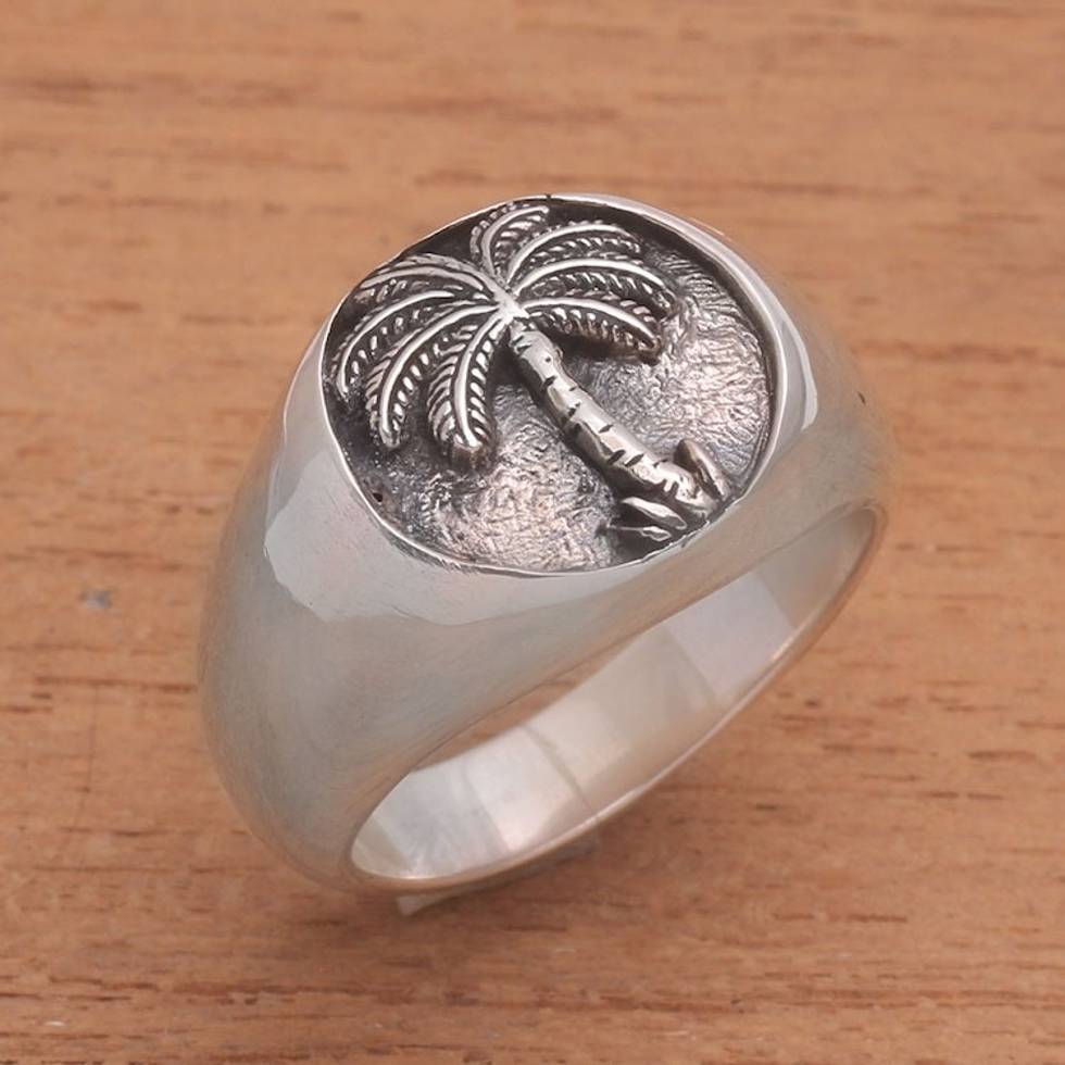 Handcrafted Palm Tree Sterling Silver Signet Ring from Bali 'Stately Palm' Item ID: 2669921327