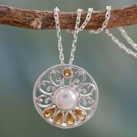 Handcrafted Pearl and Citrine Necklace 'Bihar Blossom' Item ID: 2671795018