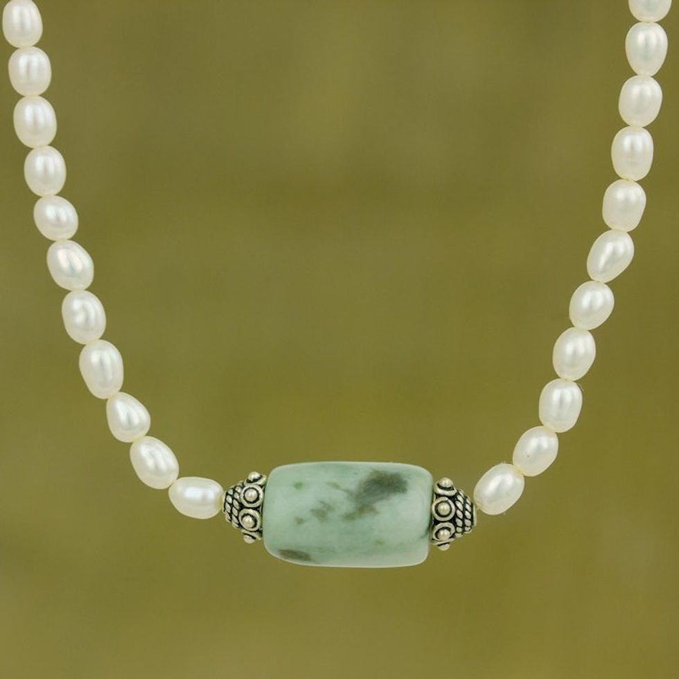 Handcrafted Pearl and Jade Necklace 'Touch of Life' Item ID: 2669926022