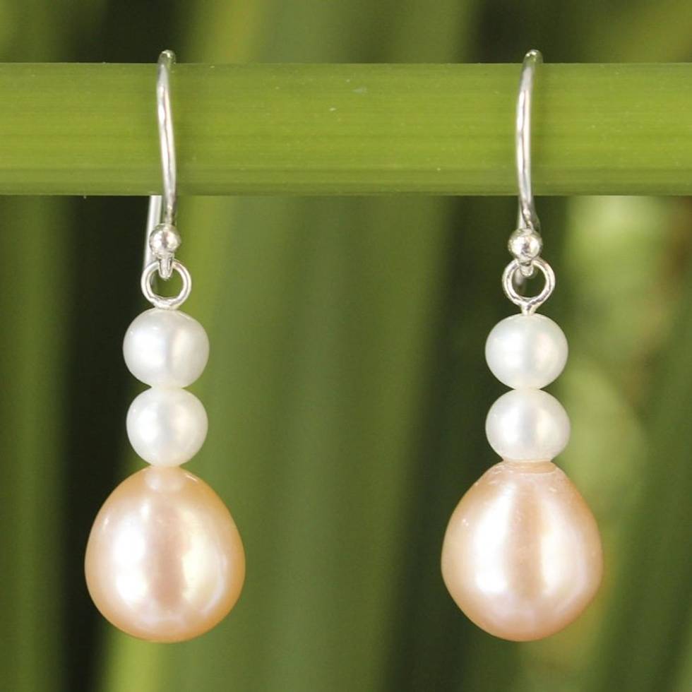 Handcrafted Pearl Earrings 'Sweet Peach Glamour' Item ID: 2669928457