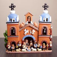 Handcrafted Peruvian Signed Ceramic Christmas Nativity Scene 'Christmas in the Stone Church' Item ID: 2671403536