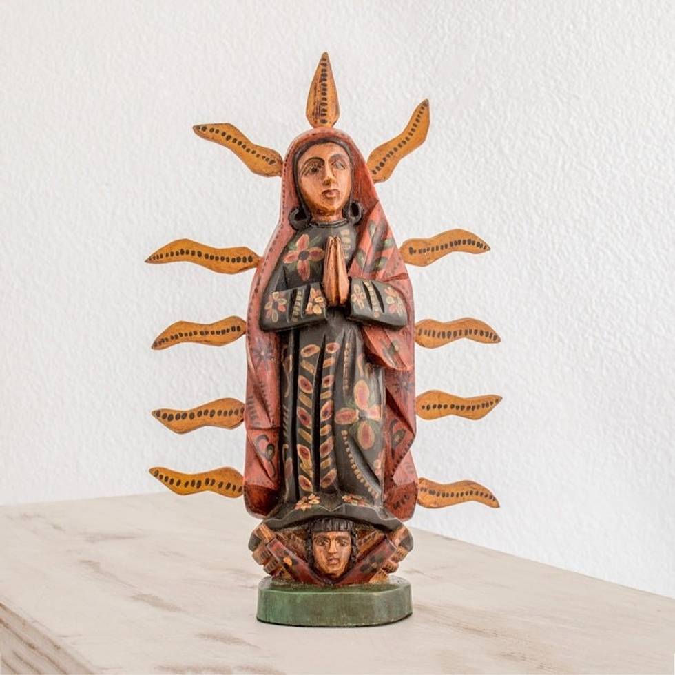 Handcrafted Pinewood Mary Statuette from Guatemala 'Glowing Guadalupe' Item ID: 2671626175
