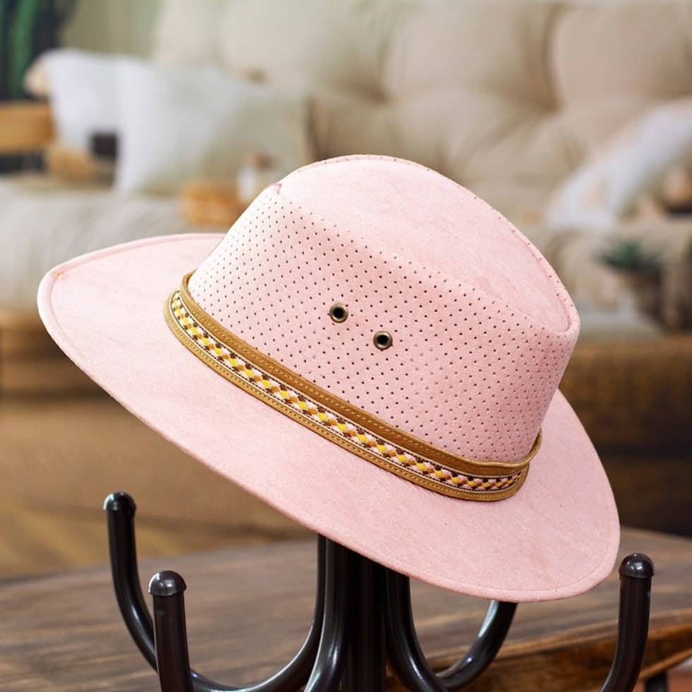 Handcrafted Pink Leather Hat with Polyester Hatband 'Classic Look in Pink' Item ID: 2669897903