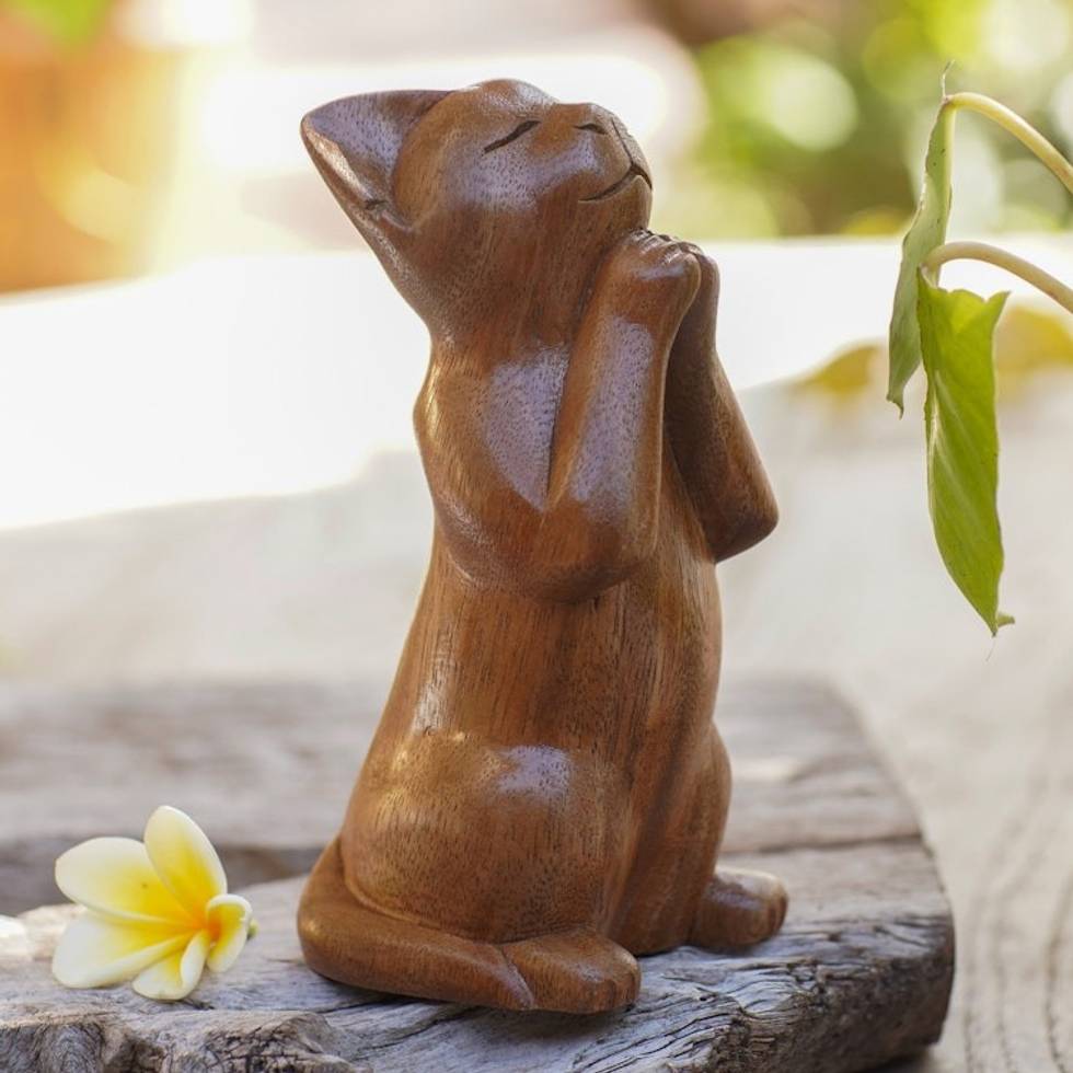 I want to tell artist Nanengh Sudarsana how much we love his sleeping cat carving. This is a popular theme and I have never seen a prettier or better executed interpretation of the theme. A true artist - not just artisan. We will follow your work and hope to purchase another item from you. Thank you so much! (And for the lovely ornamented wrapping.)