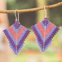 "Artisans from the Hands of Atitlan take inspiration from classic jewelry arts to create an enchanting fashion statement boasting the Guatemalan region's unique essence. The team uses glass beads to create these dangle earrings, whose geometric shape is enriched by a combination of purple and pink hues. Made for a charming soul, the pieces are also equipped with sterling silver hooks."