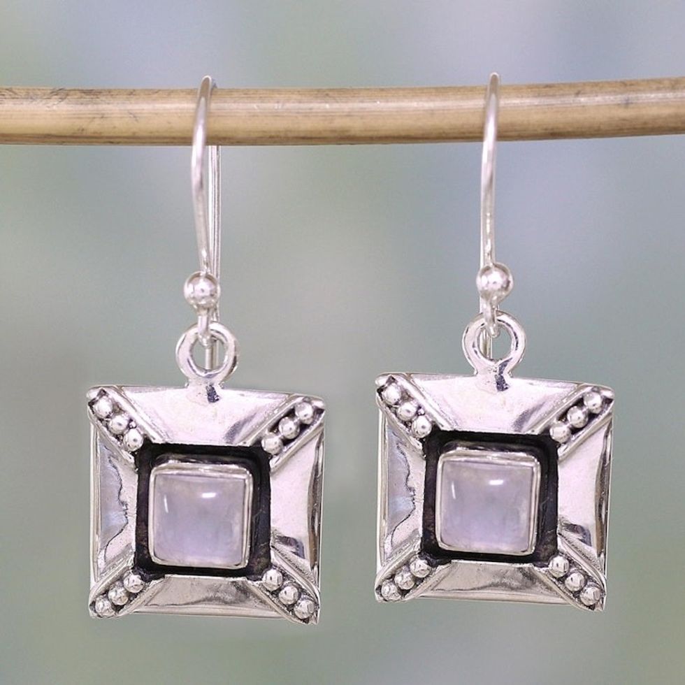Handcrafted Rainbow Moonstone Sterling Silver Earrings 'Perfect Poise' Item ID: 2671790331