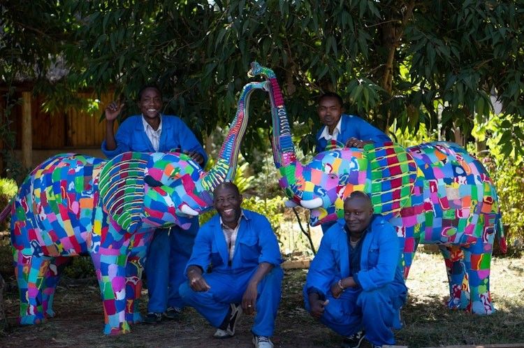 The group creates safari animal sculptures using discarded flip-flops which are collected from beaches, waterways, and landfills. Endangered marine species are protected by removing such debris from the ocean. The designs are inspired by the endangered animals they protect. In 2014, Ocean Sole carvers brought eight-foot-tall giraffes and other fanciful creatures to the National Mall for the Smithsonian Folklife Festival.