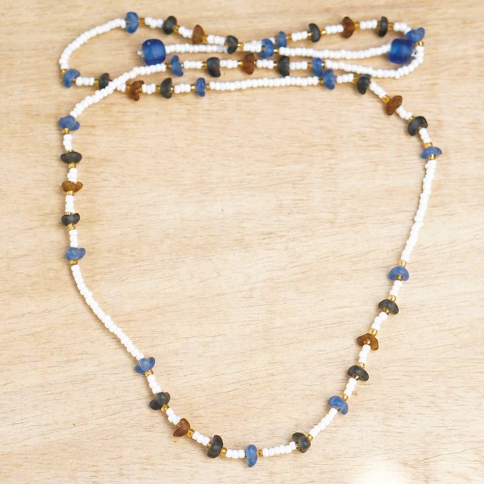 Handcrafted Recycled Glass and Plastic Beaded Necklace 'Blue Sensations' Item ID: 2671803984