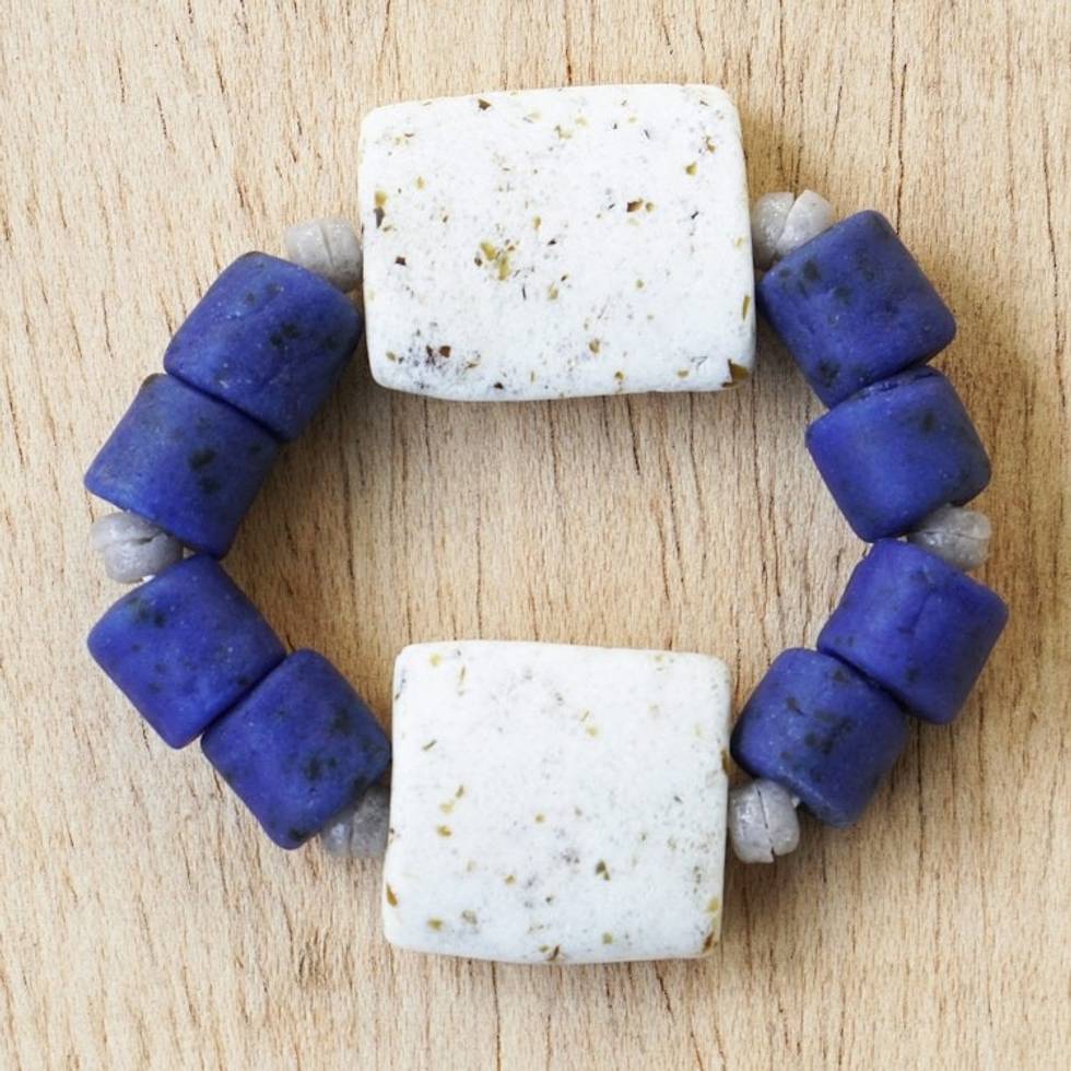 Handcrafted Recycled Glass Beaded Bracelet 'Seven Virtues' Item ID: 2671805457