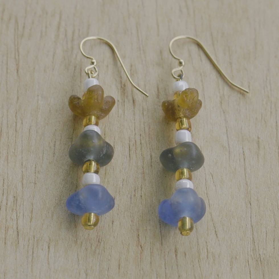 Handcrafted Recycled Glass Beaded Dangle Earrings from Ghana 'Magical Feelings' Item ID: 2671805436