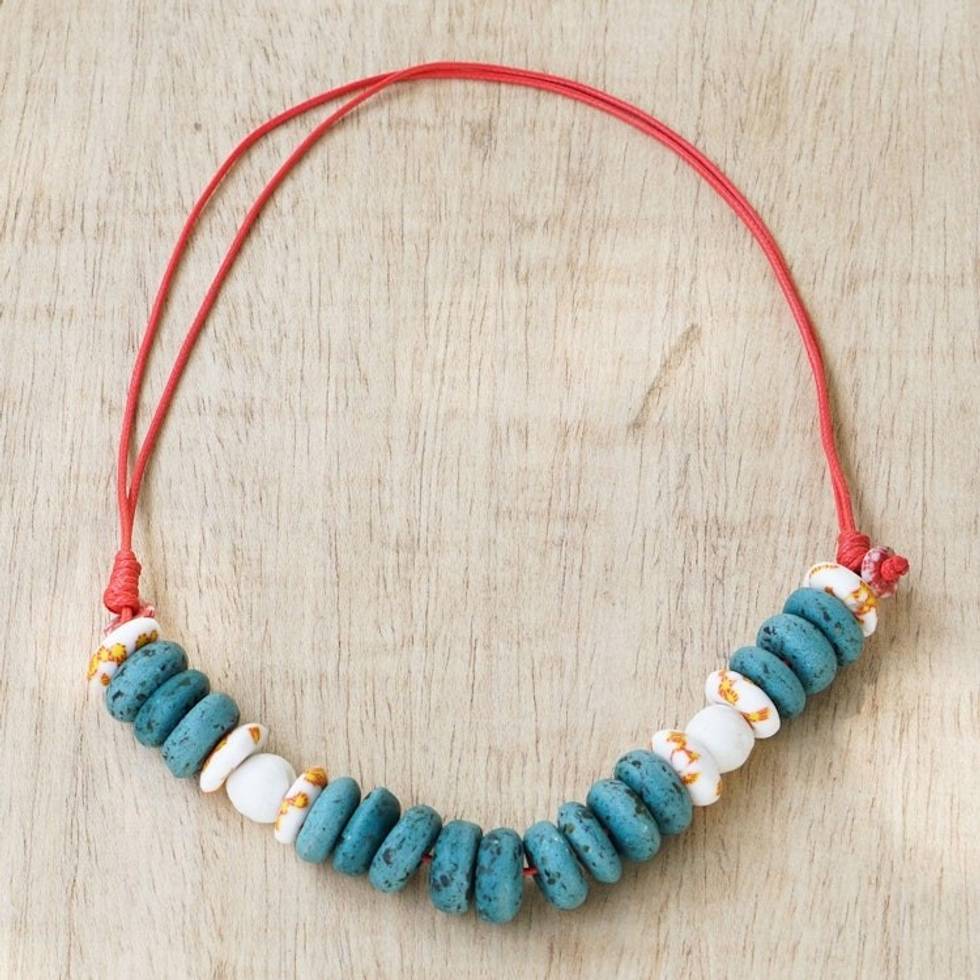 Handcrafted Recycled Glass Beaded Necklace 'Alive and Kicking' Item ID: 2671806143